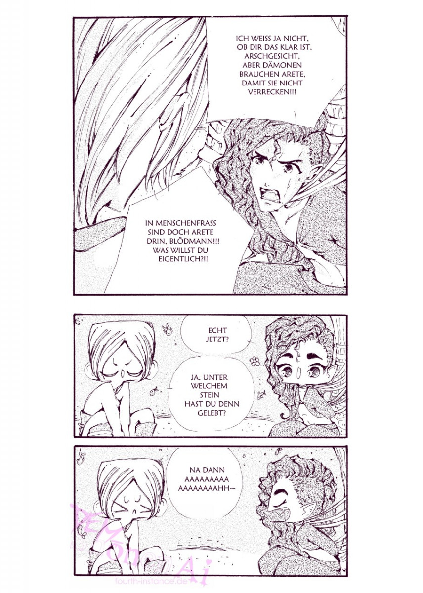 Ja, die Panelaufteilung ist hier ein kleines bisschen anders, weil diese Arc nur als Webcomic geplant ist und da funktioniert die normale Manga-Panel-Aufteilung nicht. Ich wollt’s halt mal ausprobieren. Aber keine Sorge, es wird noch eine erste Arc der zweiten Staffel geben und die hat wieder normale Panel-Aufteilung, aber die kommt erst, wenn der letzte 4i-Band zum Verkauf steht.